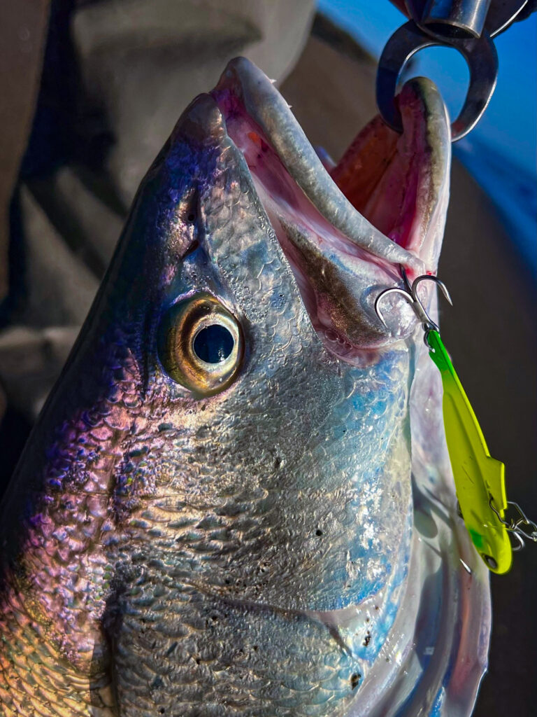 このちょっとした違いでベイトが止まったり、オオニベが口を使ったりする。