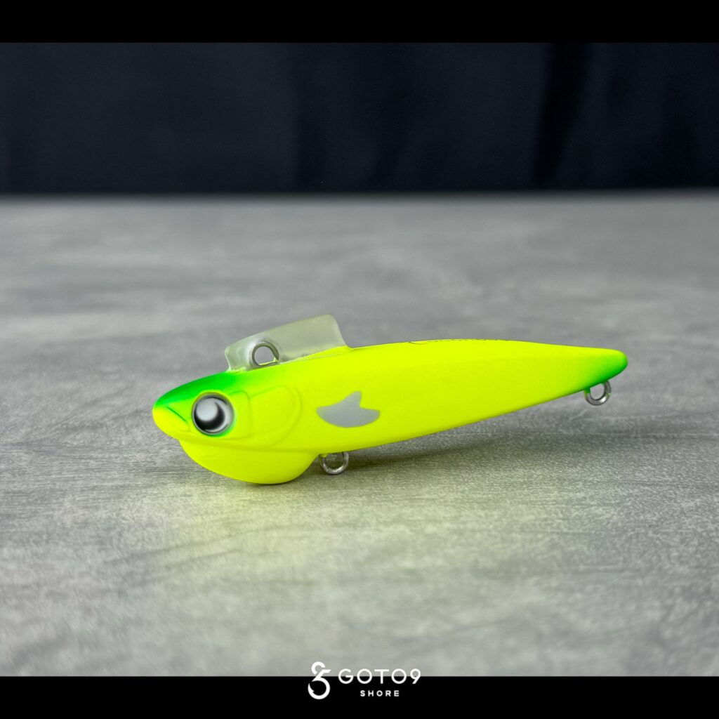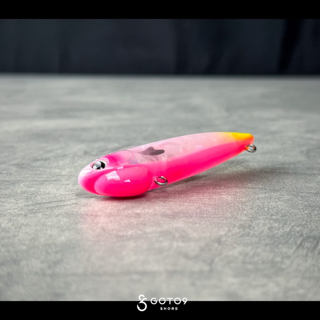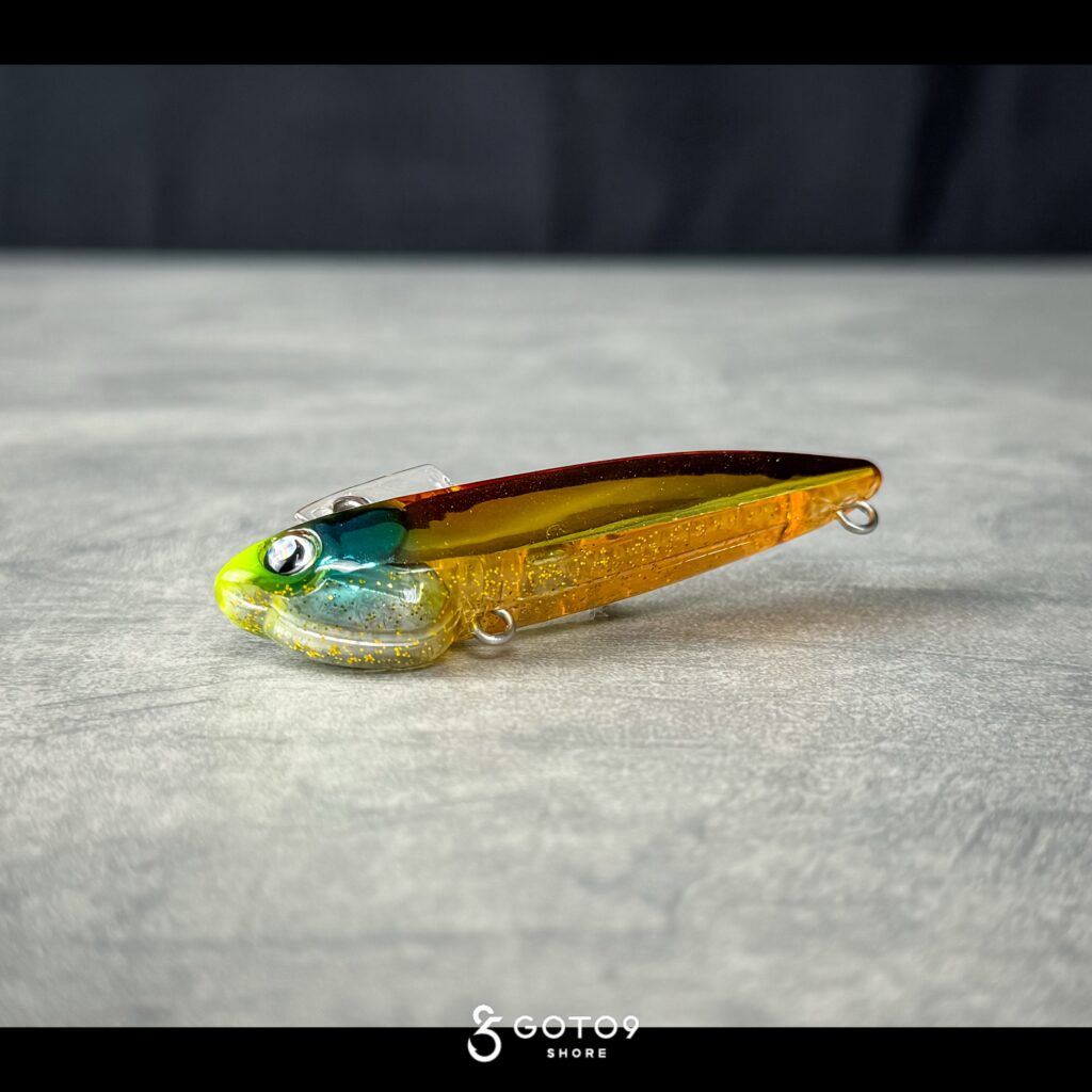 GOTO9では初採用のイナッコチャート。今回のプロトから使用されてきたテストカラーであり、吉田氏の96㎝をはじめ実績十分なため製品に採用されたカラー。03のイナッコとは対を成すポジションで、視認性を重視したホロ系カラー。