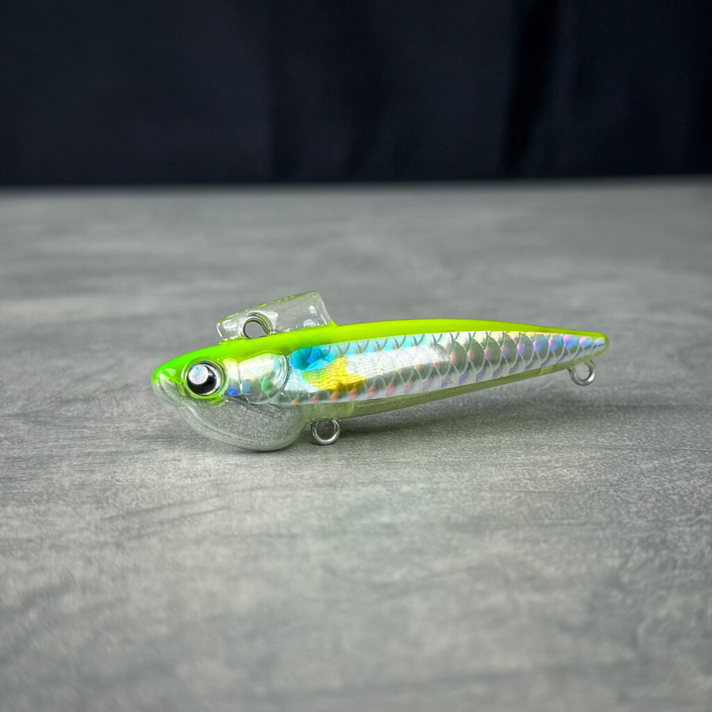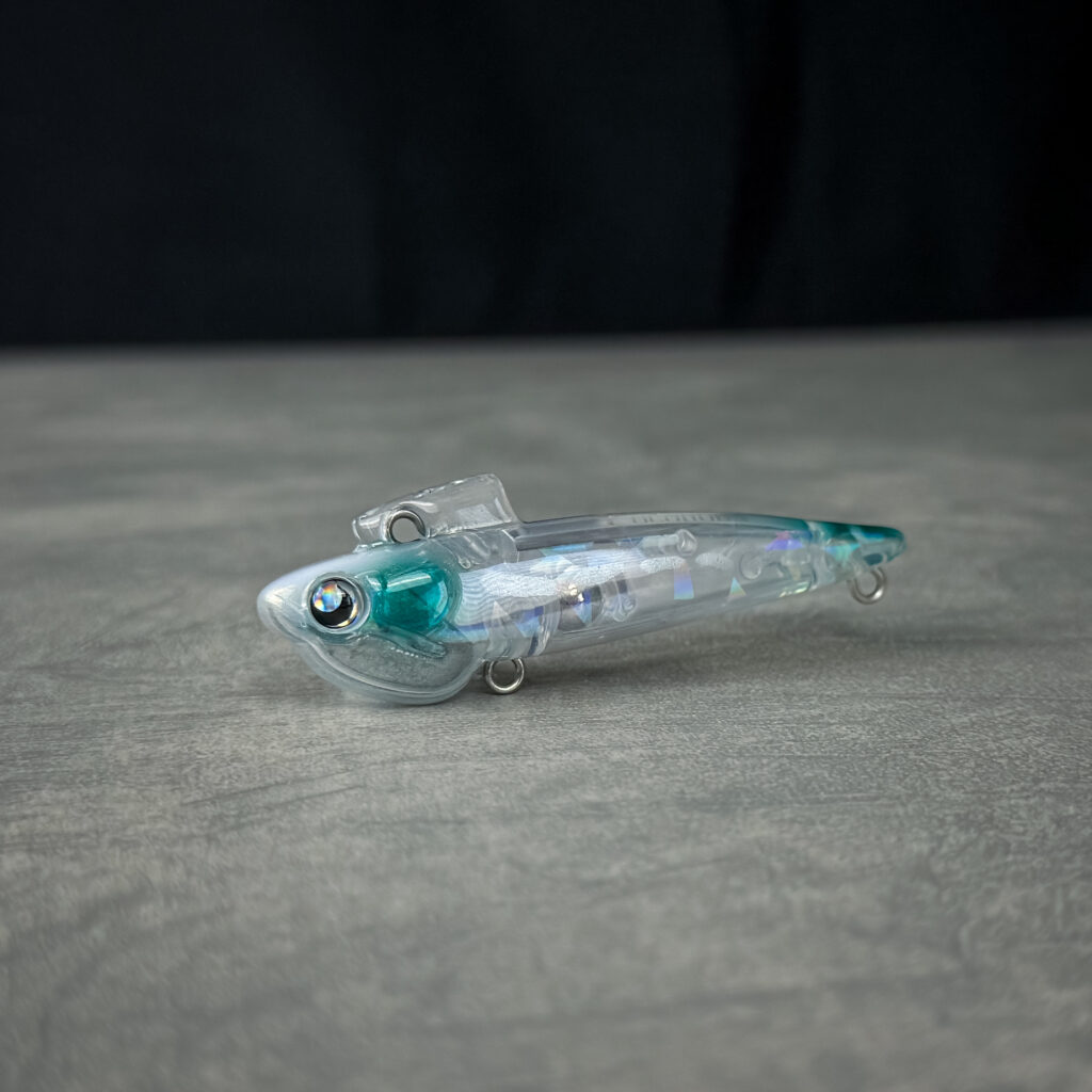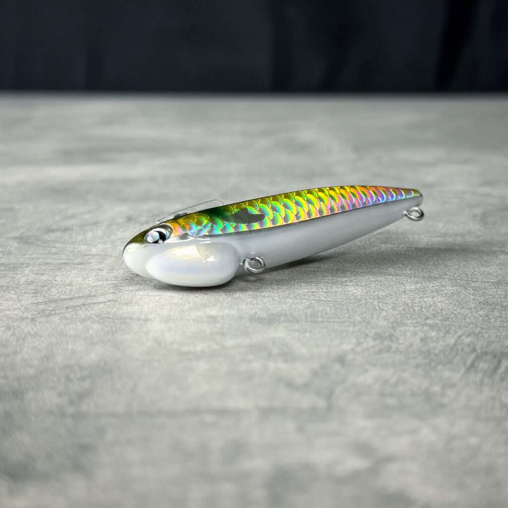文字通りのマイクロベイトパターンやイワシパターンに使いたいカラー。極力彩色をせずハク・イワシ系を意識したメッキ調のホロを採用、写真映えする最低限のカラーリングを施した。
