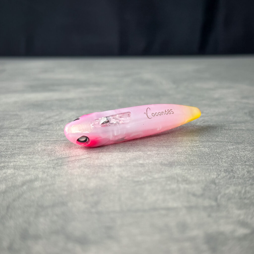 そして、「使いたくなる」かわいらしくキレイなカラーリングを目指して意識したのは、釣果写真を撮った際に口元にあると写真が華やかになる事。